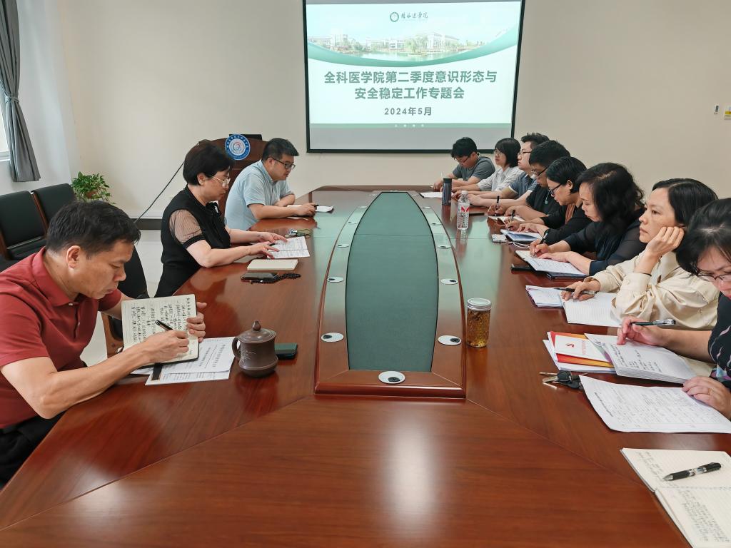 5月31日上午,全科医学院党委副书记、纪委书记潘涛主持召开2024年第二季度意识形态与安全稳定工作研判会。全体教职工参加此次会议。