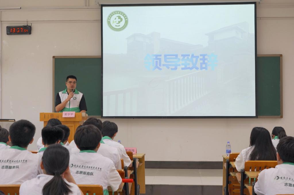 黄宇平为本次活动致辞,他希望学员充分利用这个实践平台,坚定理想信念,练就过硬本领,锤炼高尚品格,发扬志愿服务精神,向基层群众传播医疗急救知识,增强其安全防范意识和应对突发事故的自救互救能力。菁华急救知识宣讲团指导老师作开班动员,他指出开展急救教育,提升师生急救素养,守护群众生命安全具有深远意义。他希望学员能在急救培训中不断提高自身应急救护能力,同时通过急救宣讲活动提升群众应对突发事件和意外伤害的自救与互救能力,为生命安全增添一份保障。