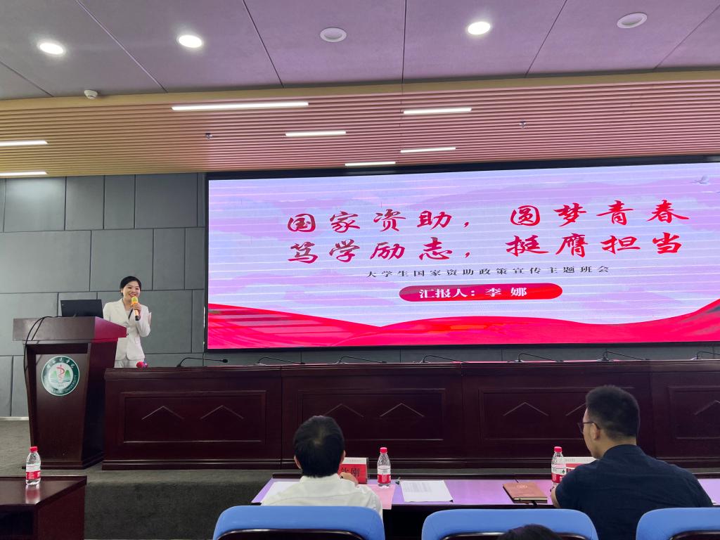 为全面贯彻党的教育方针,落实立德树人根本任务,构建完善的资助育人质量提升体系,展示资助工作者素养,6月7日下午,我校在科学实验中心报告厅举办了“青春筑梦新时代,资助伴我向未来”资助政策宣传及资助育人主题班会展评。本次活动由智能医学与生物技术学院承办,学生工作部(处)副部(处)长伍言锋、药学院党委副书记谭钦刚、学生资助管理中心老师及全体辅导员参加活动。