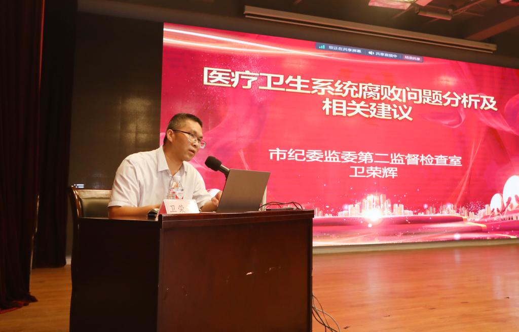 医院邀请了桂林市纪委监委第二监督检查室副主任卫荣辉作警示教育专题讲座。他结合桂林医疗系统案件,深入剖析了医疗领域腐败问题的根源和危害,讲解了医疗腐败案件特点、容易滋生腐败的风险点,警醒医务人员尤其是重点岗位人员一定要提高廉洁自律意识,筑牢拒腐防变的思想防线,坚守底线,不越红线,牢记“莫伸手,伸手必被抓!”卫荣辉还讲解了《中国共产党纪律处分条例》新修订的内容。他希望广大医务人员以案为鉴知敬畏,防微杜渐守底线,对自己负责,对家庭负责,对社会负责。