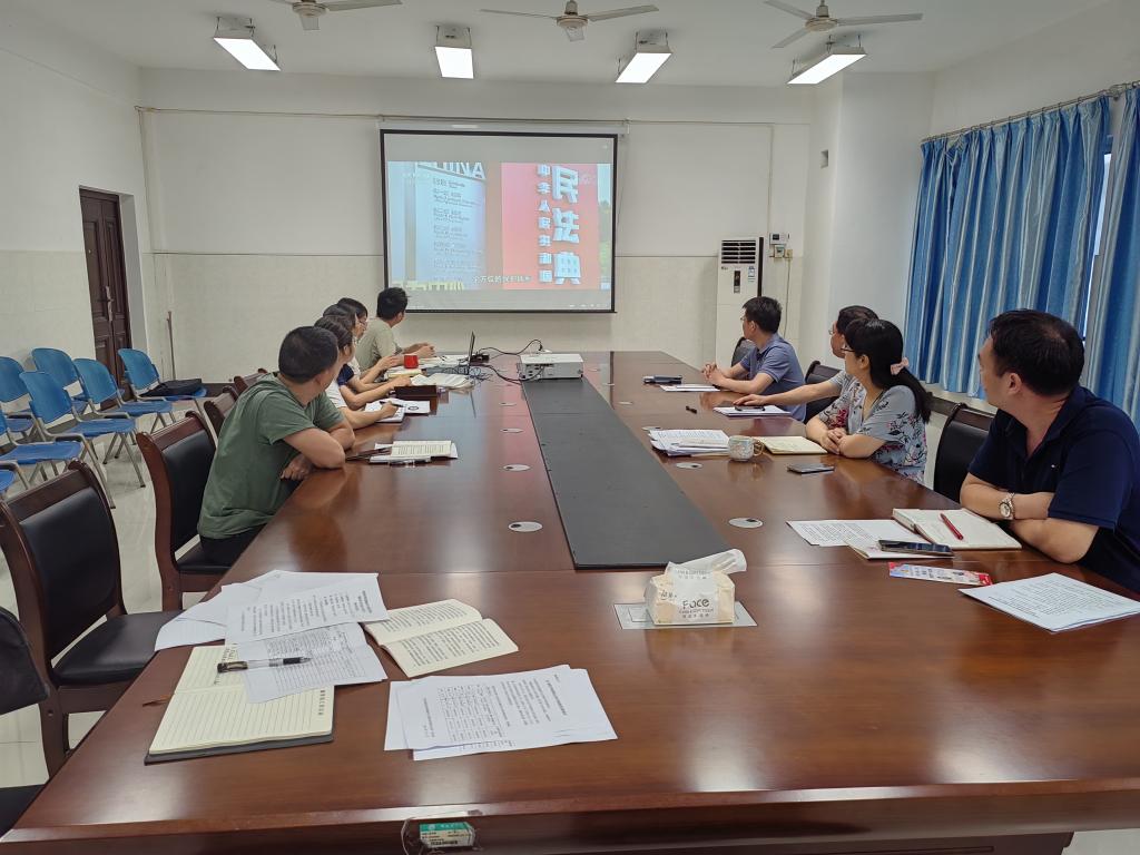 学院院长孙立元和学院党委委员胡婷婷分别领学习近平总书记关于民法典的重要论述、习近平总书记为第六批全国干部学习培训教材所作《序言》精神。与会同志结合学习心得、学院工作,作交流发言。