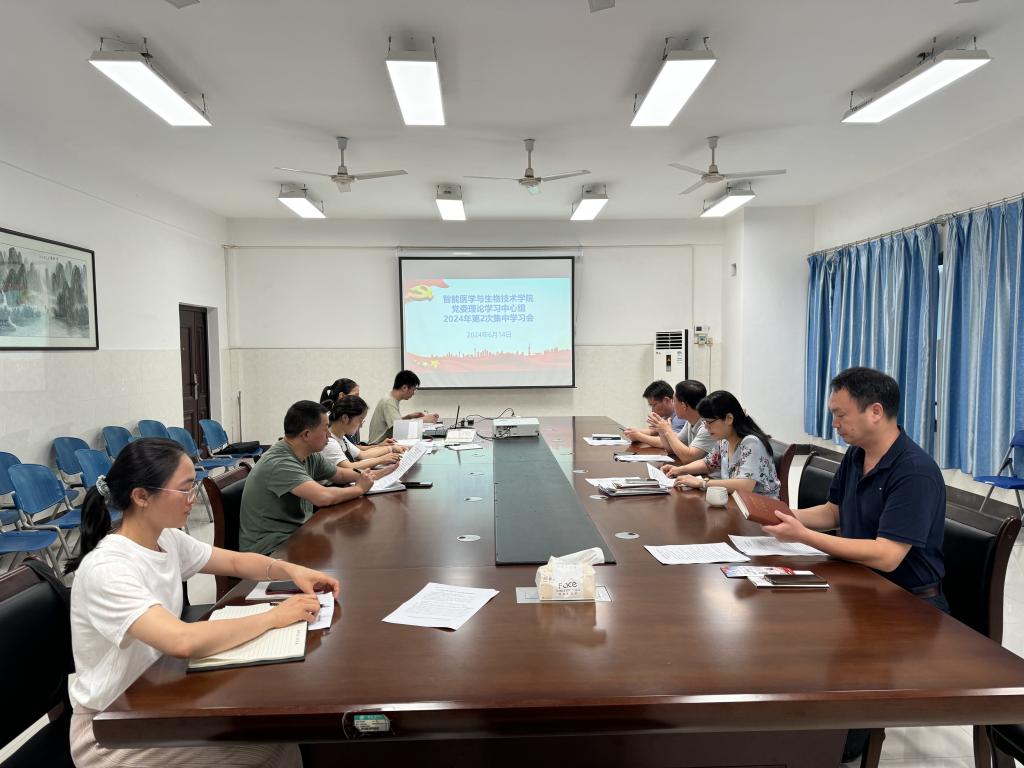 6月14日上午,智能医学与生物技术学院召开党委理论学习中心组2024年第2次集中学习会。学院党委委员、党政领导、各党支部书记参加会议。学院党委书记黄月圆主持会议。