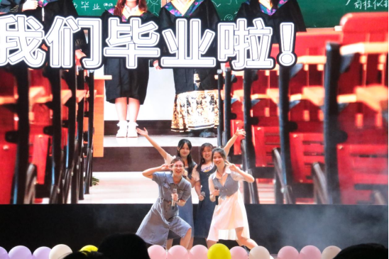 晚会现场彩灯璀璨,掌声雷动,洋溢着浓厚的青春气息。黄月圆为晚会致辞,她回顾了毕业生们在校学习生活的点点滴滴,表达了对他们的美好祝愿和深切厚望,希望毕业生怀着对知识的渴望和探索的兴趣,保持一颗谦逊、坚定、感恩的心,在新征程上续写新的青春华章。舞蹈《batter up》以激昂的旋律和充满活力的舞姿点燃了现场的气氛;话剧《大考结束那一天》、民族舞《赐给你金》、歌曲串烧、舞蹈表演、乐器演奏等节目精彩纷呈,展现了学院学子的才华和青春活力。由毕业生们填词改编的歌曲《像你这样的朋友》将晚会推向高潮,让大家仿佛又回到了欢乐的校园时光。