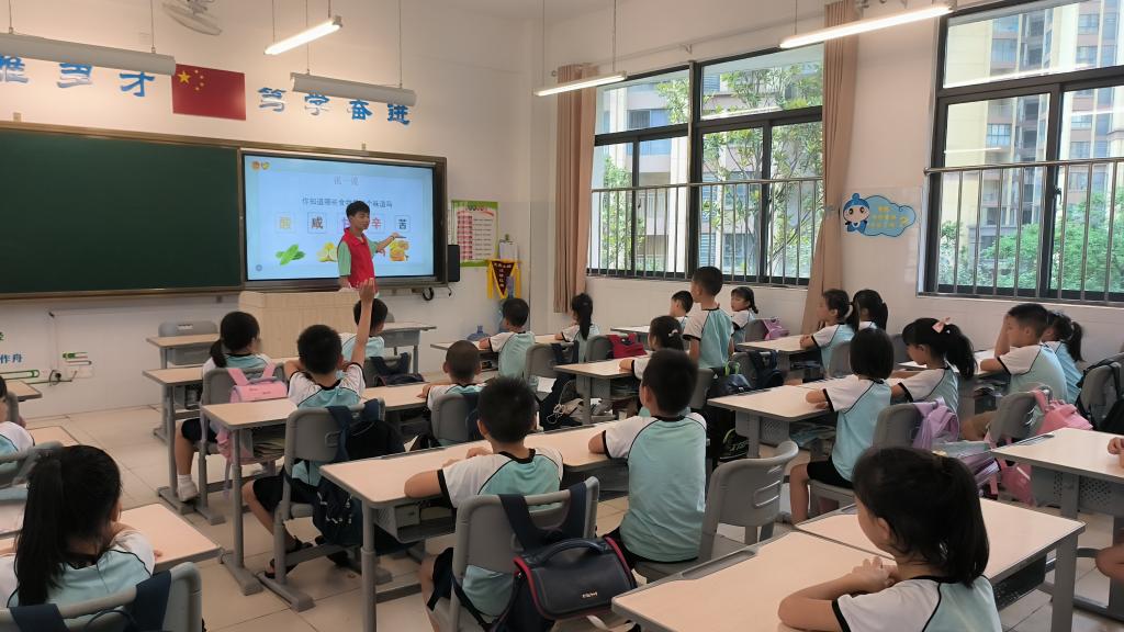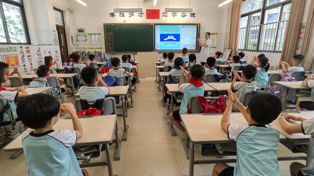 师生志愿者进入一年级各班教室开展活动。学生志愿者为孩子们讲解中医药的基本概念,讲述“神农尝百草”等历史故事。随后,学生志愿者介绍酸、苦、甘、辛、咸等五种味道在中医药中的意义和作用,邀请孩子们现场闻中药,感知和分辨不同的味道。此外,学生志愿者向孩子们介绍庆阳的板蓝根、甘草等中药特产,通过展示图片和实物,让孩子们了解这些药材的生长环境、药用价值、在日常生活中的应用,进一步激发孩子们对中医药文化的兴趣。互动环节,孩子们积极参与、踊跃发言,现场氛围热烈。为了引导孩子们增强卫生意识、养成良好的卫生习惯,第二附属医院药学部的医生给孩子们介绍手部卫生相关知识。通过生动的示范和互动,孩子们不仅学会正确操作“七步洗手法”,还明白了每个步骤的意义和作用,懂得起居有常、饮食有节、爱健康、会生活。