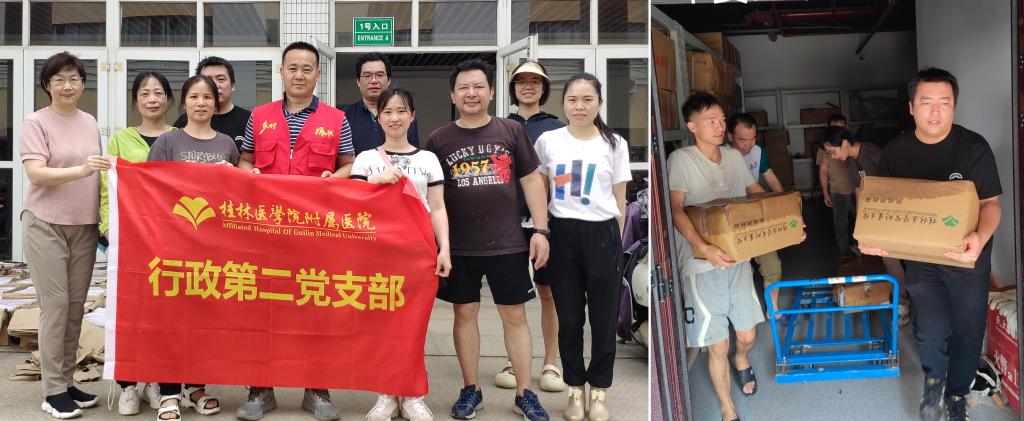 6月19日,受连日的强降雨影响,桂林市城区出现超30年一遇洪水,桂林医学院东城校区距离漓江、小东江较近,水位快速上涨,为保障师生员工生命安全,抢救学校、医院财产和灾后及时恢复生活生产,附属医院党政领导高度重视抗洪抢险和灾后重建工作,党委书记蒋伟、党委副书记王群、副院长袁晟光、总会计师陈东靠前指挥,保卫科及后勤管理部工作人员、志愿者积极开展抗洪抢险和灾后重建工作。