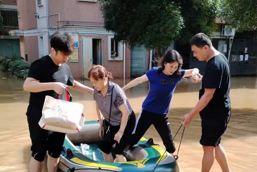 在紧张的救援工作中,6名安保人员全情投入应急工作,顾大家舍小家。安保人员莫宏宇在转运物资过程中脚趾被洪水下的不明物体划伤,鲜血直流,但他简单进行消毒包扎后,又坚持与同事们一起继续搬沙袋、搬设备、指挥交通。