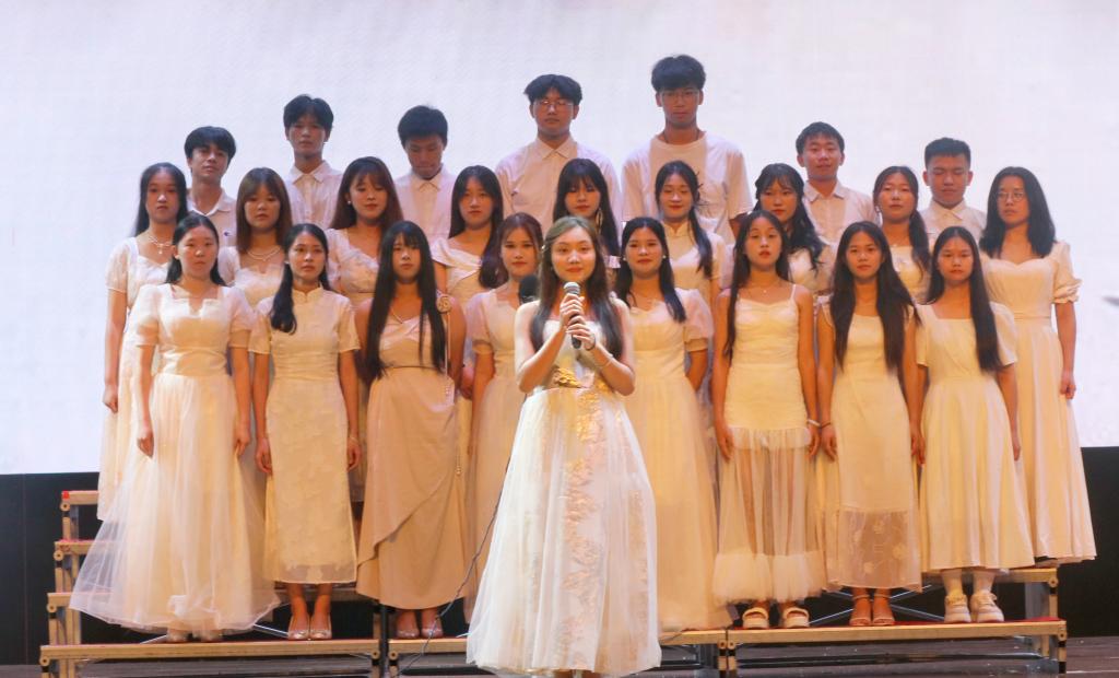 晚会在热烈的掌声中进行,每一个节目都充满了情感的共鸣。《Fancy》《Batter up》《炳灵》以舞姿诉说他们的青春故事,展现了青春的激情;在《明明就》《Letting go》《逆光》《不用去猜》《如果可以》《北京东路的日子》《最美的期待》《耿耿于怀》的歌声中,学生们对过去的留恋和对未来的憧憬交织在一起,引发了在场每个人的深深共鸣。小品《新生入学》,是同学们对过去岁月的温情告别,也表达了对明日旅程的热切期盼。最后,学院领导和老师们走上舞台,合唱《再见》,他们的歌声深情而坚定,既是在为毕业生们送行,又是在为他们加油鼓劲。