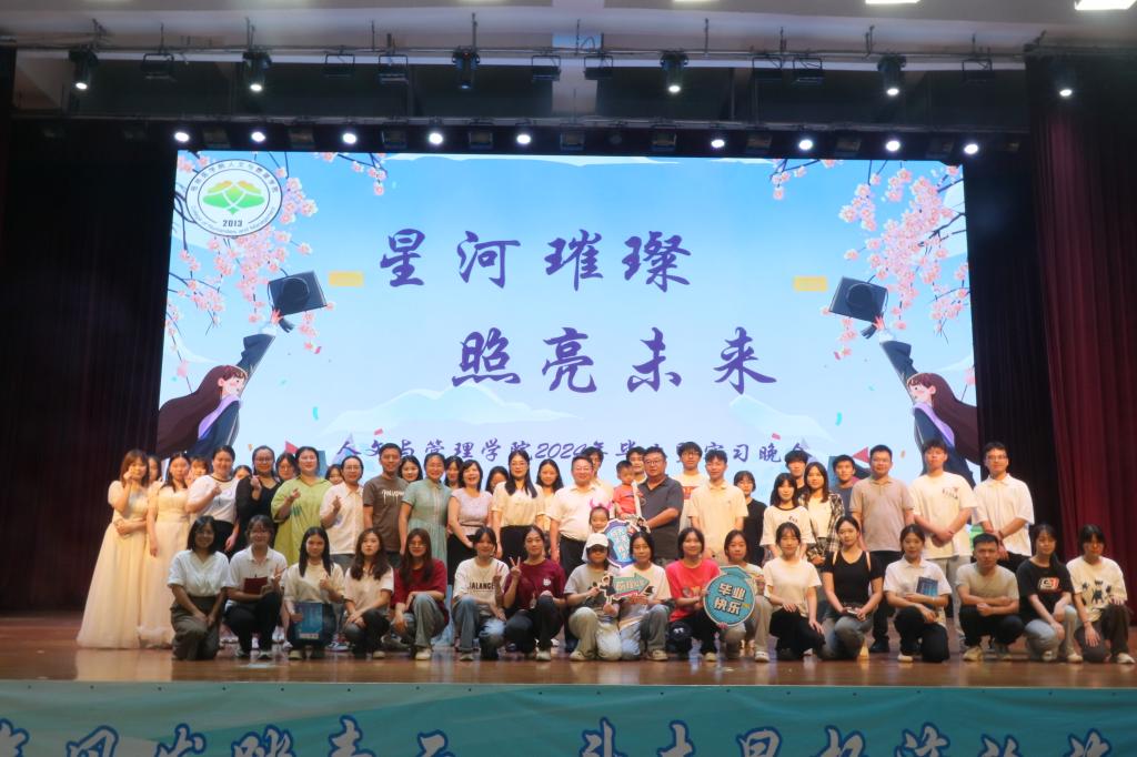 6月26日晚,人文与管理学院在临桂校区大学生活动中心四楼举办2024年毕业暨实习欢送晚会,学院领导,毕业班班级导师、班主任及学院全体师生齐聚一堂,共同奏响青春的乐章。