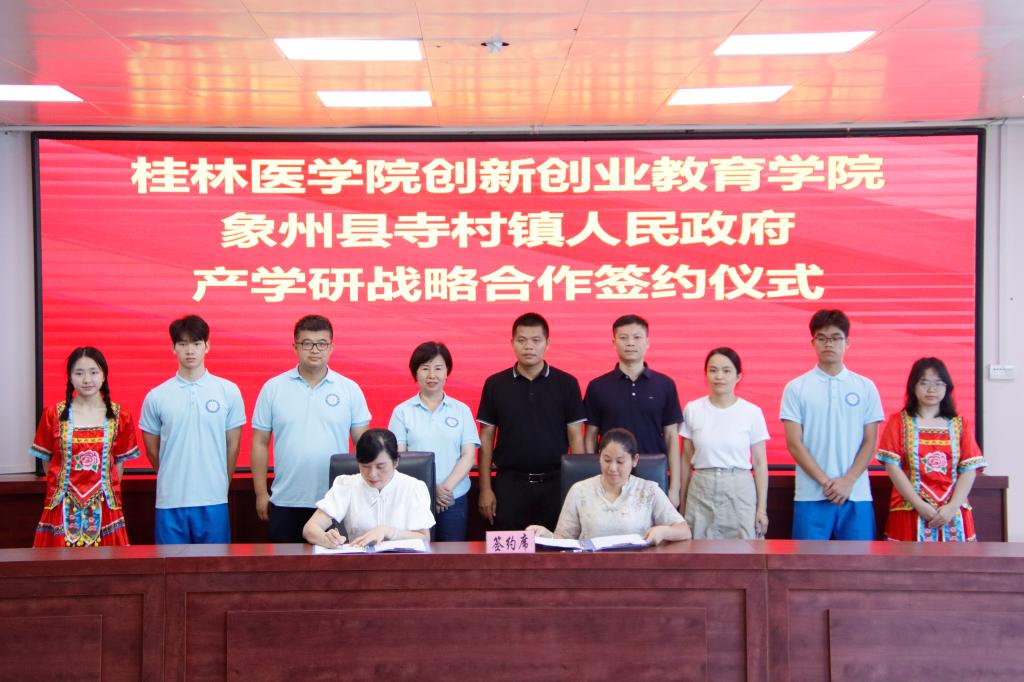 签约仪式结束后,双方举行了揭牌仪式,共同建设“桂林医学院创新创业实践基地”。依托“双创”实践基地,充分发挥创新创业教育学院在人才培养和科技创新方面的优势,结合寺村镇的地方产业及资源优势,双方扎实探索增强新质生产力切入点,共同开启产学研合作的新篇章。