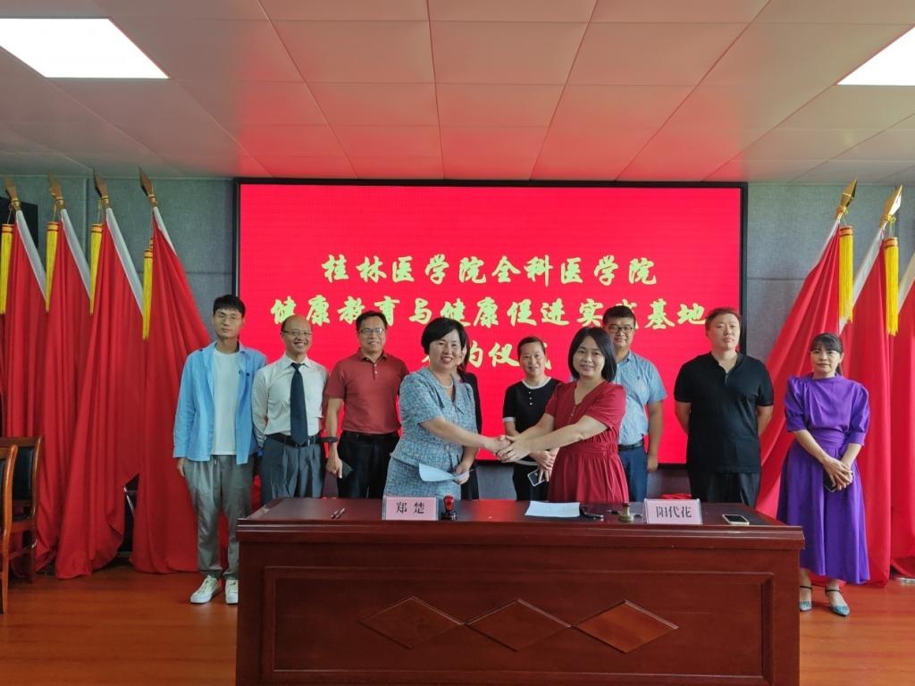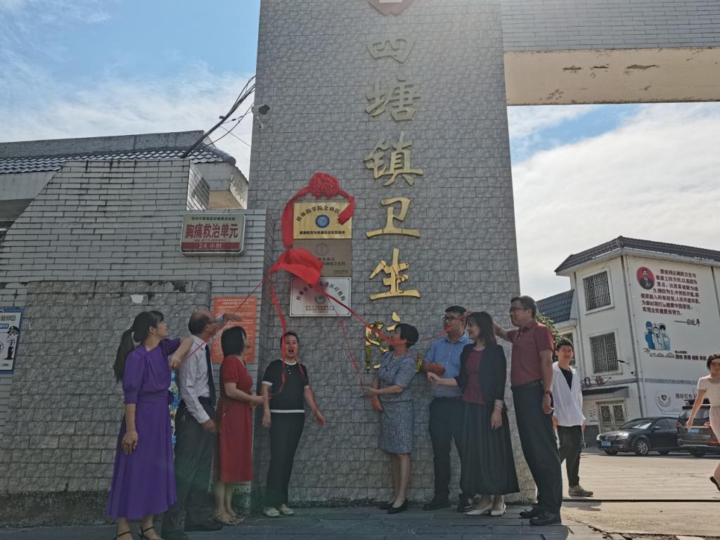 为响应健康中国战略,促进桂林市卫生健康教育事业的发展,9月24日,桂林医学院全科医学院院长郑楚带领学院领导、教师及学生一行44人前往桂林市临桂区四塘镇卫生院举行健康教育与健康促进实践基地签约揭牌仪式。桂林市临桂区卫生健康局负责人曾小红、全科医学院副书记潘涛、副院长梁志清、专职组织员周长春及四塘镇卫生院院长阳代花、执行院长谢福生出席活动。