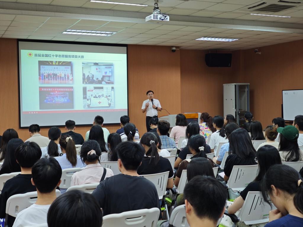 校团委副书记陶光均以“志愿服务项目的培育及参赛指导”为题,结合桂林医学院红十字会“模拟池塘”——场景式青少年防溺水生命教育项目,就如何做好志愿服务项目的培育和比赛申报进行了分享,详细阐述了志愿服务活动、项目和品牌之间的内在联系,并指导大家如何开展志愿服务项目的挖掘、设计和组织实施。