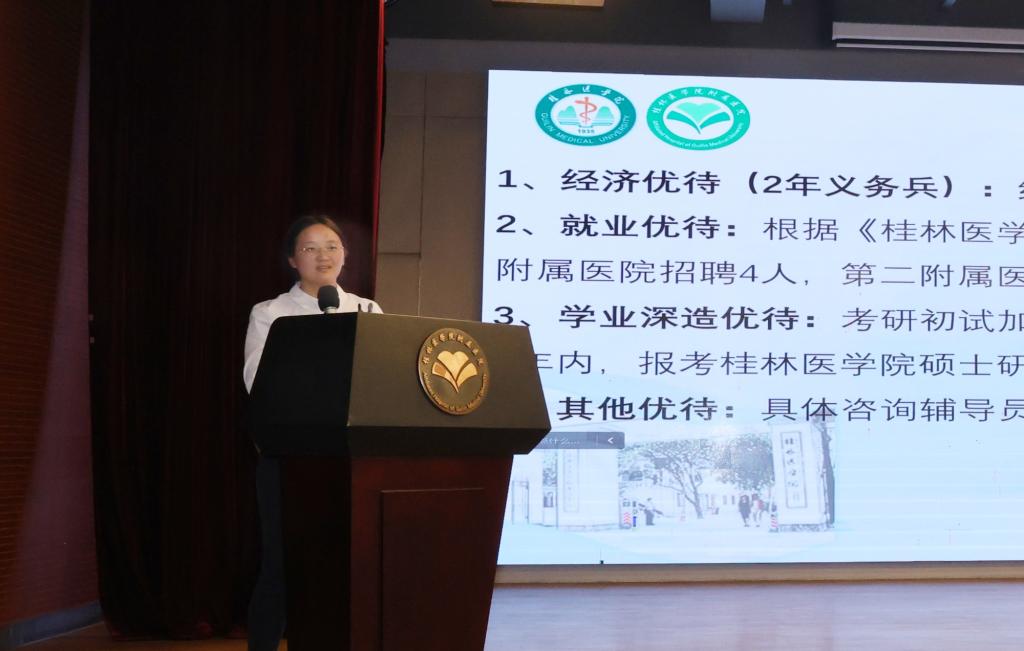 为深入贯彻落实党中央、国务院“稳就业”“保就业”决策部署,稳步推进学院就业工作,促进毕业生高质量就业,11月1日下午,临床医学院2025届毕业生就业暨征兵动员大会在乐群校区综合楼六楼多功能报告厅举行。附属医院(临床医学院)党委书记蒋伟、党委副书记王群、康复医学系副主任许玲出席会议,学工办毕业生辅导员及临床医学院2025届毕业生500多人参加了会议。