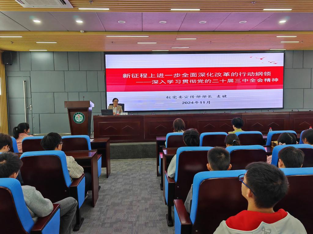 报告会上,麦婕以“新征程上进一步全面深化改革的行动纲领——深入学习贯彻党的二十届三中全会精神”为主题,从充分认识党的二十届三中全会的重大意义、深入学习领会习近平总书记在党的二十届三中全会上的重要讲话精神、全面准确理解《决定》提出的进一步全面深化改革重大举措等三个方面作了系统阐释和重点解读。报告重点突出、切合实际,既有理论高度、思想深度,也有针对性,对全院师生准确理解和全面把握党的二十届三中全会精神具有指导性意义。