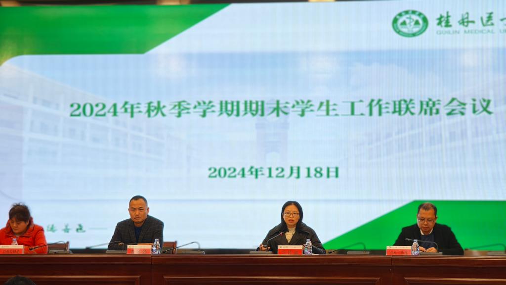 12月18日上午,我校在临桂校区明德楼101会议室召开2024年秋季学期期末学生工作联席会议。校党委宣传部、教务处、学生工作部(处)、武装部、保卫处、后勤管理处等部门负责人,二级学院(系)分管学生工作领导、学生工作部(处)全体成员,全体专兼职辅导员参加会议。会议由学生工作部(处)部(处)长龙亮主持。