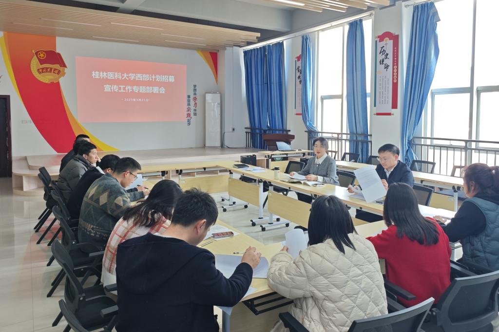 滕亚根据广西项目办会议要求,就高质量抓好2025年西部计划项目工作,突出思想政治教育引导、政策宣传落实及关心关爱跟踪指导等全链条精细化管理进行了安排部署。她表示,希望各学院高度重视西部计划招募宣传工作,制定工作方案,组织开展多种形式的西部计划政策和典型宣讲,严格工作纪律,注意工作方式方法,把各环节落实落细。