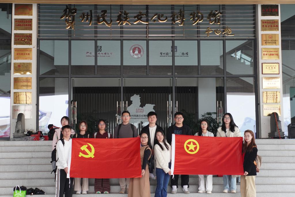 在贺州民族文化博物馆,党员们沉浸式体验瑶族、壮族等少数民族非遗文化。精美的瑶族刺绣、古朴的壮族铜鼓、生动的民族史诗,勾勒出中华民族多元一体的生动图景。这些文化瑰宝让师生真切感受到“各美其美,美美与共”的内涵。队伍结合当地民族文化开展民族团结进步教育,号召党员争做民族团结的宣传员、践行者。师生随即参观郭沫若文化陈列馆和徐悲鸿美术馆,在场党员表示要以文化为桥梁,当好民族团结的宣传者和实践者,让“石榴籽”精神在基层生根发芽。