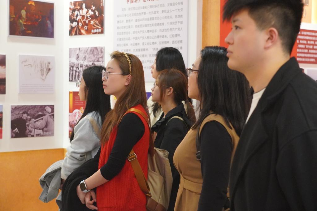 随后,党员们走进贺州市卫健系统党建教育基地。通过参观“党建+医疗”特色展陈,深入了解当地卫健系统以党建引领深化医药卫生体制改革的创新实践。“党员先锋岗”“健康扶贫”等优秀案例让在场师生深刻感受到党建与业务深度融合的实效。