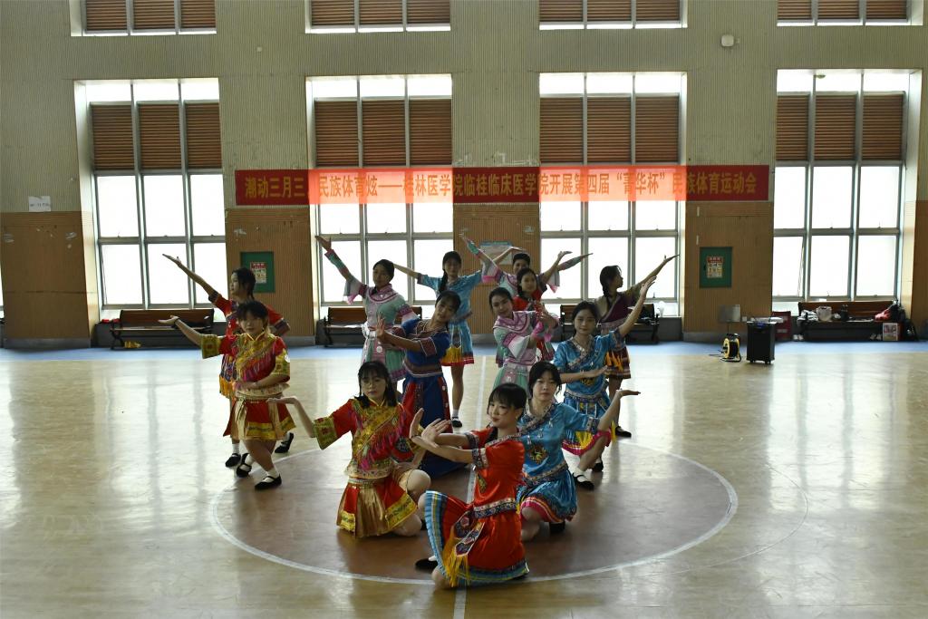 为积极推动广西民族传统体育发展,弘扬民族传统体育文化,增强民族团结和谐的氛围,铸牢中华民族共同体意识,让学生感受广西特色节日“三月三”的独特魅力,3月22日下午,临桂临床医学院在临桂校区举办第四届“菁华杯”民族体育运动会。基础医学院党委书记朱开梅等6位班级大学生导师,教务处副处长李建周等8位班主任、学工办全体老师以及学院学生代表队参加此次活动。