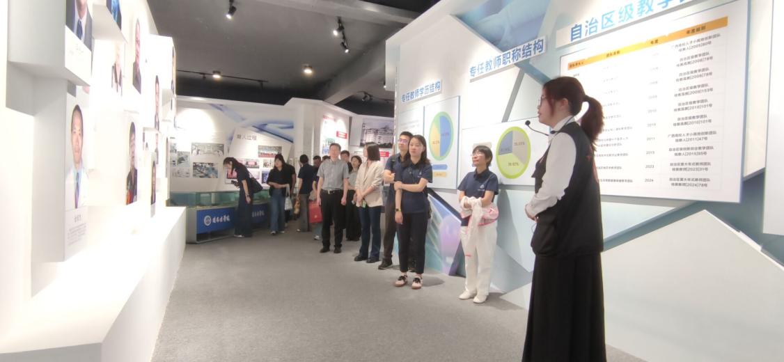 调研中,李辉一行参观了学校办学成果展、图书馆和学院一楼展厅,通过实物展品及图文讲解,重点呈现了学校及学院的教育教学成果,涵盖了人才培养模式、课程体系建设以及学生实践能力培养等。李辉一行对我校的历史沿革与发展脉络有了详细了解,我校优美的校园风光、良好的办学条件也得到了大家一致赞赏。