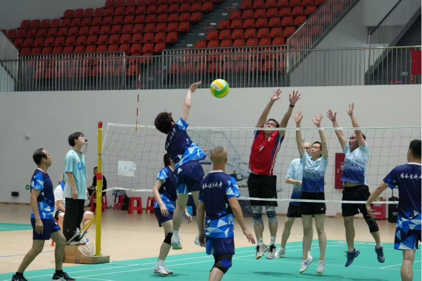 5月17日,桂林片区高校后勤气排球比赛在桂林医科大学临桂校区体育中心举行。来自广西师范大学、桂林电子科技大学、桂林理工大学、桂林航天工业学院、桂林师范学院、桂林旅游学院以及我校等7所高校的后勤代表队参加比赛。
