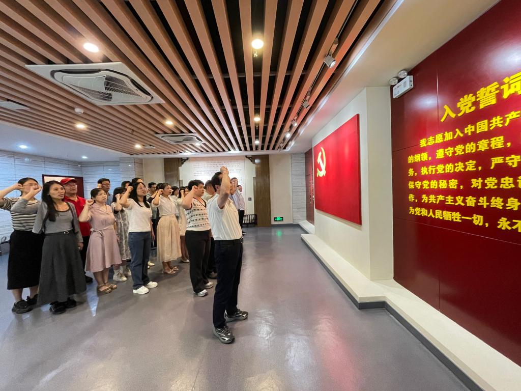 参观结束之际,在学院党委副书记、院长吕卫华的领誓下,全体教师党员举起右手,面对鲜红的党旗庄严宣誓,重温入党誓词,回顾入党宣誓时的庄重承诺和坚定决心,时刻牢记为党育人、为国育才的初心使命,坚定心有大我、至诚报国的理想信念,努力做一名有情怀、有高度、有温度的思政课教师。