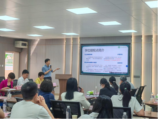 会上,右江民族医学院护理学院党委书记黄上峰对护理学院一行的到来表示热烈欢迎。院长张莉芳、副院长麻新灵、学科建设科科长纪龙飞分别详细介绍了该院护理学专业认证、护理硕士专业学位授权点核验合格评估工作的开展情况,分享了他们的工作经验和卓有成效的做法。