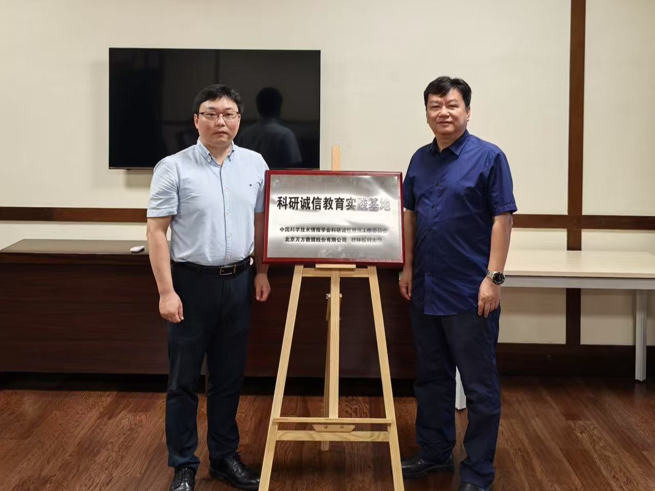 讲座结束后,师生在图书馆会议室进行“科研诚信教育实践基地”揭牌仪式。