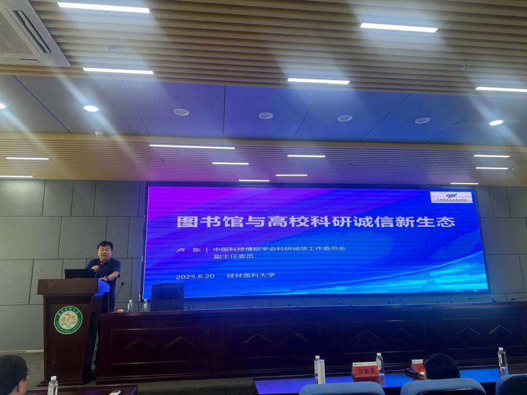 近日,高校科研诚信新生态讲座暨“科研诚信教育实践基地”揭牌仪式在我校临桂校区举行。本次活动有200余名师生参与,我校图书馆馆长主持会议。