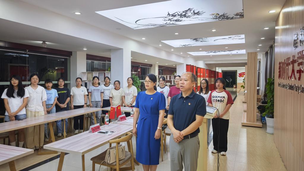 一曲《唱支山歌给党听》的旋律响起,师生们齐声高唱,嘹亮的歌声将现场气氛推向高潮。黄月圆作总结发言,对在场同学提出殷切期望,希望同学们能更加坚定理想信念,更好发挥榜样作用,更稳做好桥梁纽带,为学校和学院发展贡献青春力量。