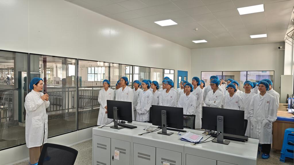 揭牌仪式后,师生们参观了柳药集团现代化医药物流中心、零售智能仓、桂中大药房门店、仙茱国医馆、仙茱制药及柳州煎煮中心等核心业务板块,并与企业高管、校友代表围绕职业成长路径进行深入沟通交流。