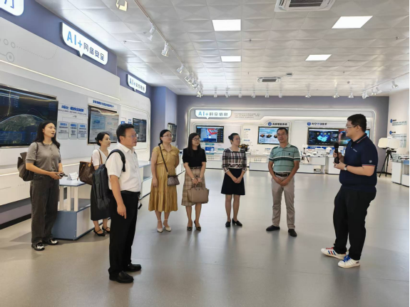 调研组一行先后参观了桂林电子科技大学人工智能成果展、政府数字传播与文化软实力研究中心,直观感受了桂电在文理交叉融合、服务地方发展方面的创新实践与显著成果。随后,双方在办公楼会议室举行了座谈交流。王源林首先对桂林医科大学同仁的到访表示热烈欢迎,并详细介绍了桂电人文社会科学的发展历程与现状。他重点分享了桂电依托工科优势,在高层次人才引育、国家级项目申报、科研平台建设、交叉学科发展、科研成果转化等方面的创新举措与取得的丰硕成果。