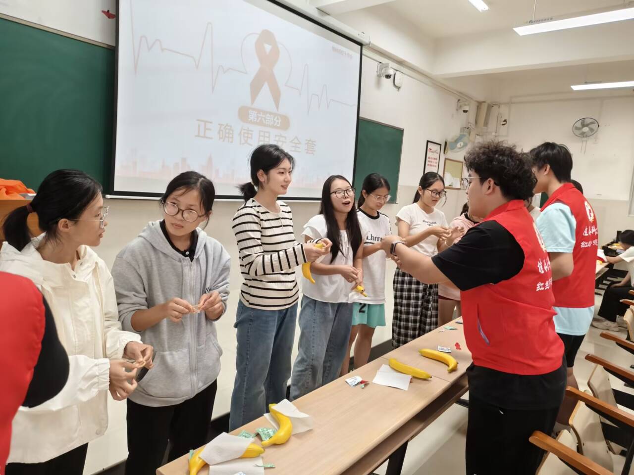 为增强实际防护能力,宣讲队员现场演示了安全套的正确使用方法,并邀请观众上台动手操作。沉浸式的教学方式帮助同学们切实掌握关键防护技能,有效提升自我保护能力。在随后开展的有奖问答环节中,同学们踊跃参与,积极互动,进一步巩固了所学知识。现场气氛热烈,反响良好。作为学校健康教育的重要组成部分,本次活动通过“实例讲解+互动实操”的多元形式,有效普及了艾滋病防治知识,切实增强了学生的自我保护意识与社会责任感,为营造无歧视、共健康的校园环境贡献了积极力量。未来,学校红十字会将继续深入推进防艾宣传工作,持续扩大健康教育的覆盖面与影响力。
