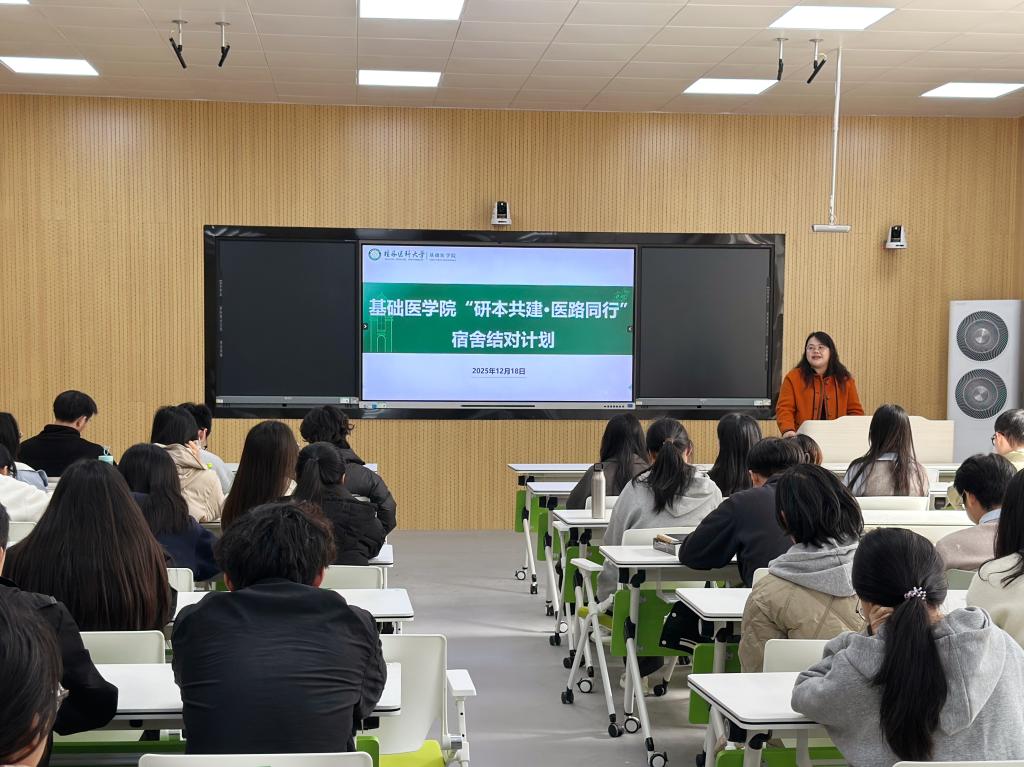 为系统夯实学风建设根基,强化本研学生传承与引领,构建本硕贯通、协同育人的长效机制,近日,基础医学院举行“基石·领航”行动宿舍结对仪式。学院党委副书记许玲、学工办主任陆俊荣,全体结对研究生党员及2025级首届基础医学本科班全体同学参与活动。