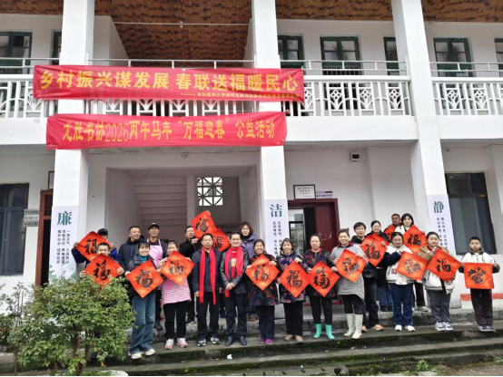 新春临近,年意渐浓。为弘扬中华优秀传统文化,丰富乡村精神文化生活,将温暖祝福与浓厚年味送至群众身边。近日,学校乡村振兴办联合龙胜各族自治县书法协会,走进定点帮扶的平熬村,共同举办“迎新春、送春联、送福字”文化惠民活动。活动以笔墨传情,以文化暖心,为乡村振兴添彩,为民族团结聚力。