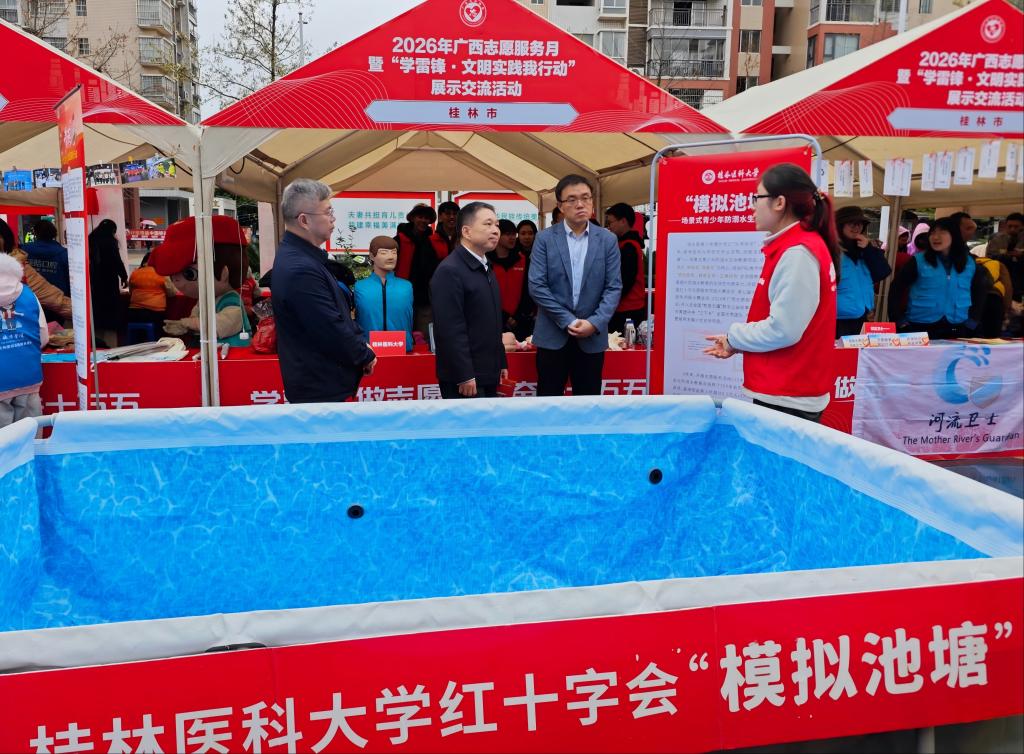 3月1日,由自治区党委社会工作部、自治区文明办、桂林市委联合举办的2026年广西志愿服务月暨“学雷锋·文明实践我行动”集中展示交流活动在桂林市空明社区举行,广西14个市的志愿者组织代表参加活动为市民提供志愿服务,宣传雷锋精神。