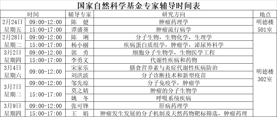 为提高我校科研人员国家自然科学基金项目申请书质量,进一步推进2023年度国家自然科学基金的申报工作,现开展2023年度国家自然科学基金申请书撰写“一对一、面对面”专项辅导活动,特邀请申报经验丰富的专家对科研人员进行一对一辅导,具体时间安排见附件。
