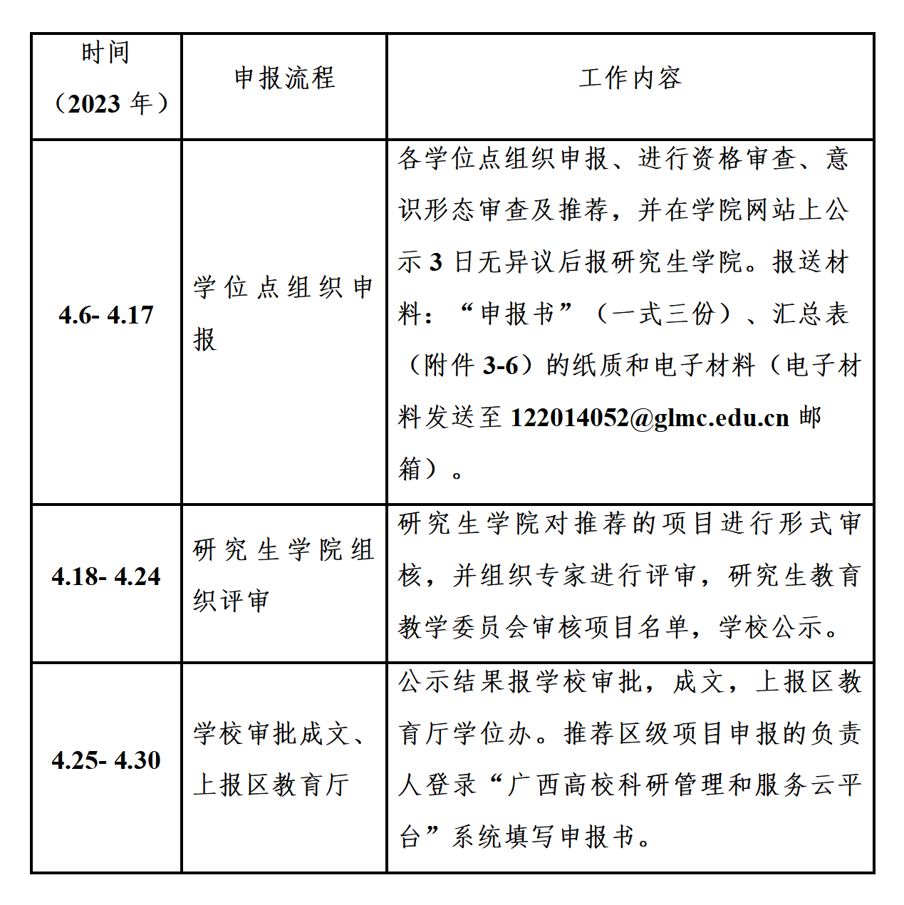 根据《自治区学位委员会 自治区教育厅关于申报2023年广西学位与研究生教育改革课题的通知》(桂学位〔2023〕2号)的文件精神,结合我校实际情况,现组织申报2023年广西学位与研究生教育改革课题和校级学位与研究生教育改革项目,现就有关事项通知如下: