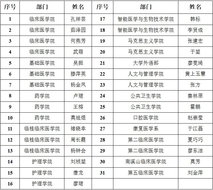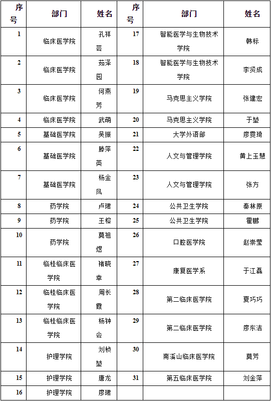 学校于8月25日下发了《关于开展2023年度桂林医学院青年教师教学竞赛的通知》,经各二级学院(系、部)认真组织初赛,共31位教师进入决赛。现将决赛的有关事项通知如下: