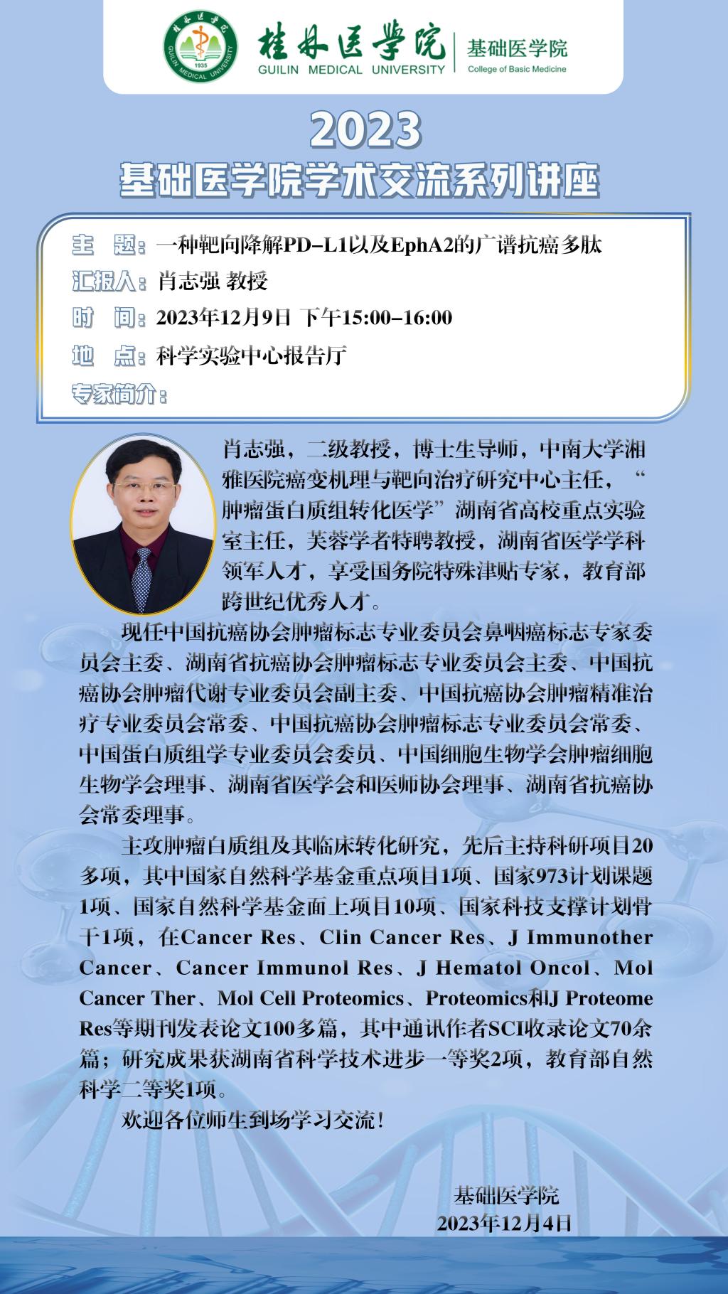 基础医学院2023年学术交流系列讲座通知(一)