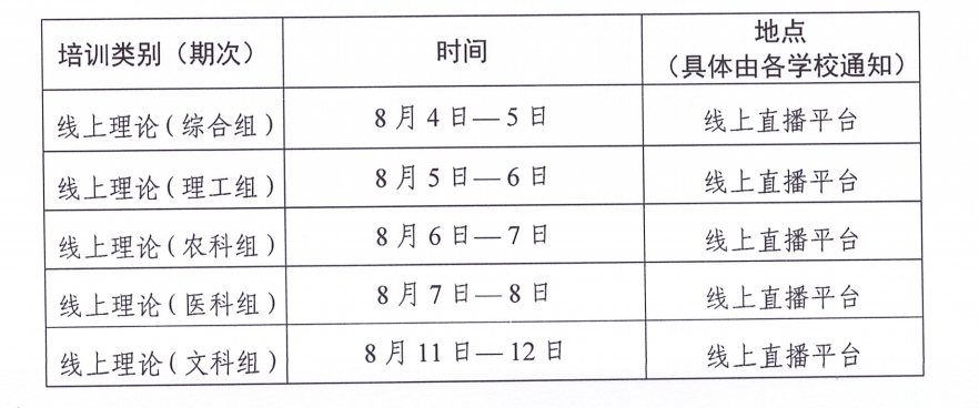 2.培训方式:线上培训(2025年8月11日前登录直播平台(https://szh.enetedu.com)“人工智能赋能高等教育人才培养系列师资培训”专区,输入手机号与验证码报名,选择相应学科组,具体培训日期见附表。)