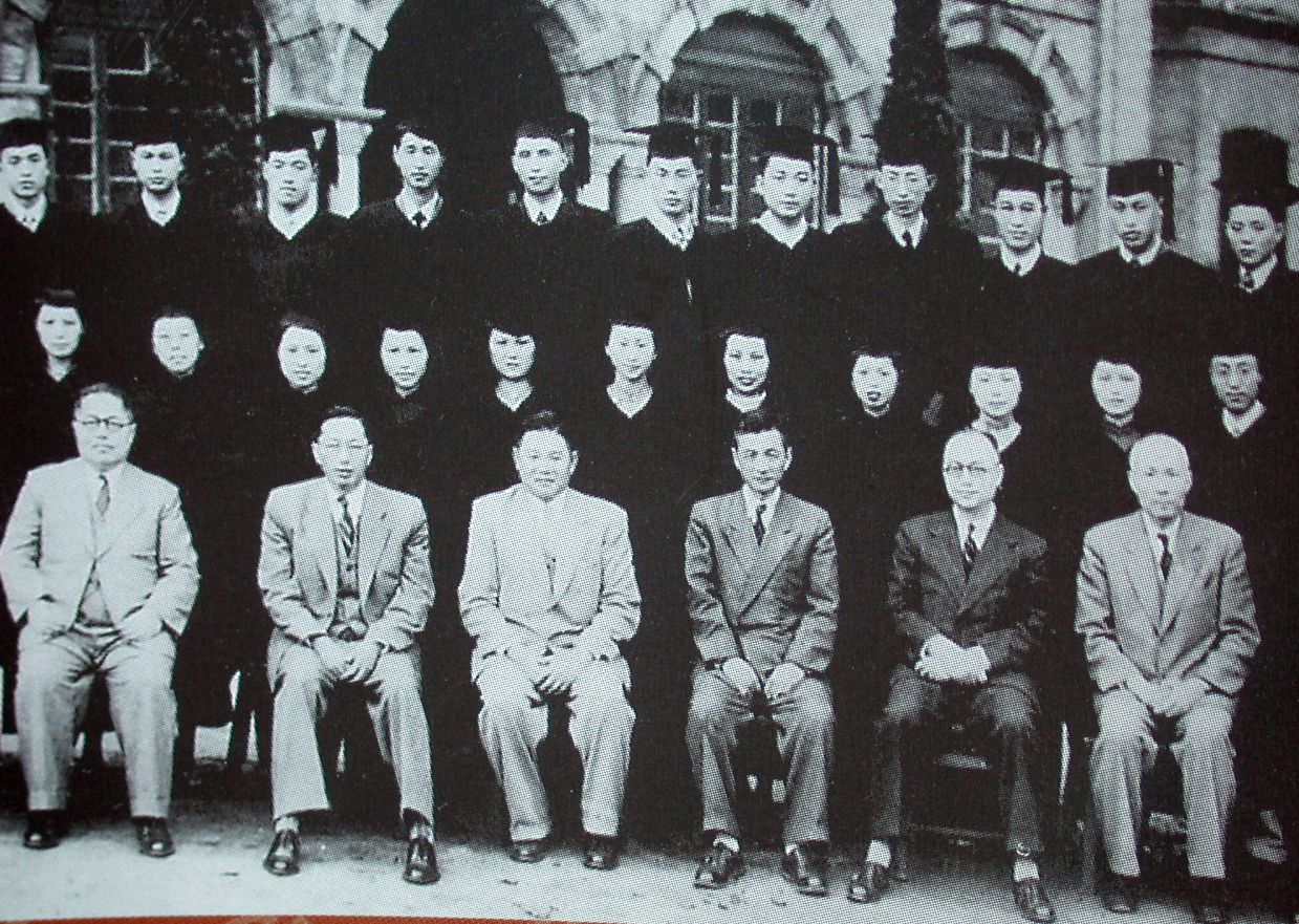 1949年我校首任校长李祖蔚(前排右1)与毕业生合影