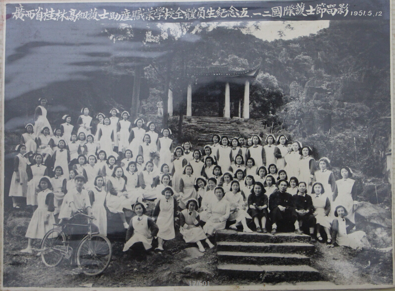 1951年5月12日广西省立桂林高级护士助产职业学校全体师生纪念5.12国际护士节留影
