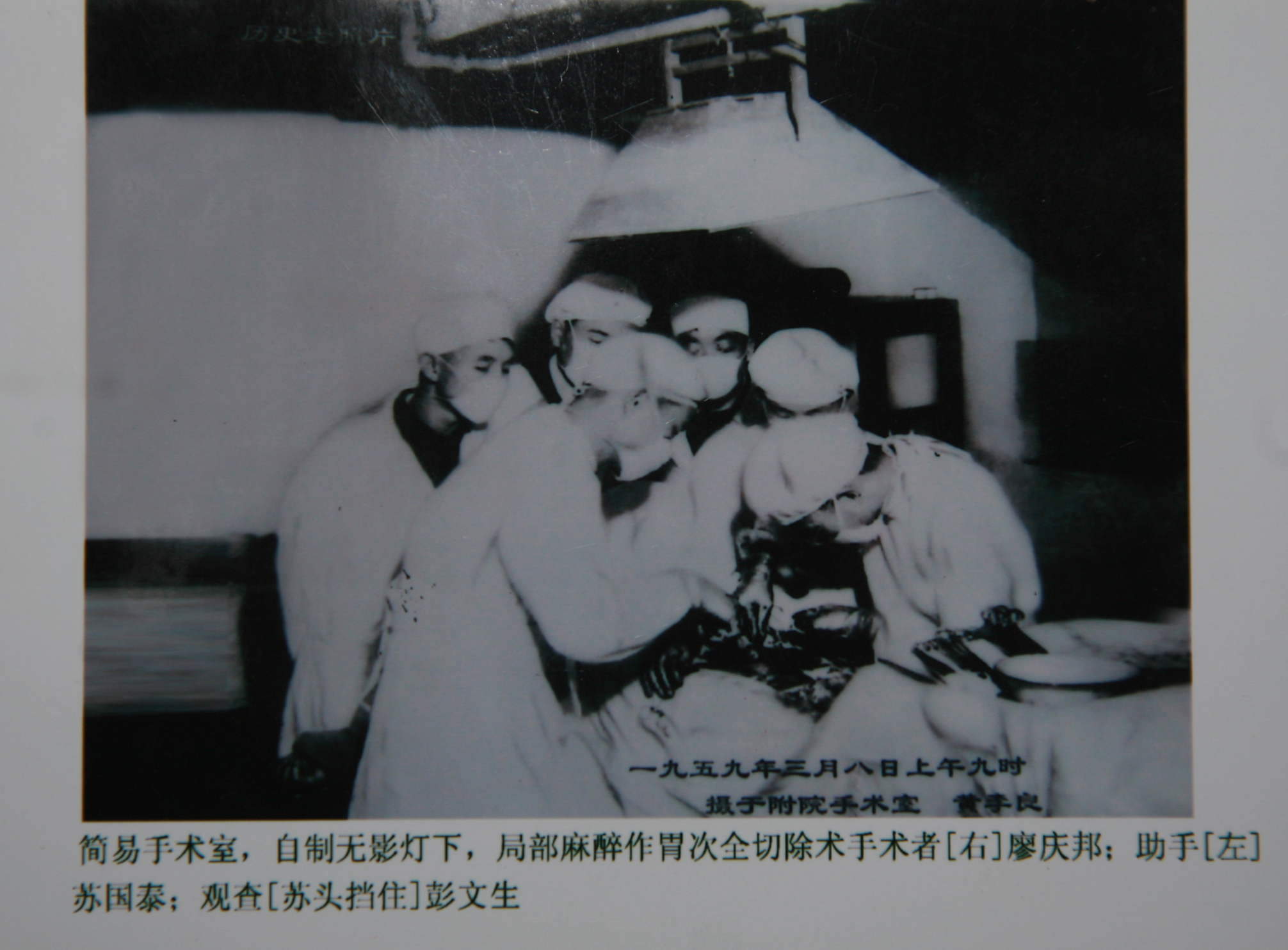 1959年3月8日附院医生在自制无影灯下做手术