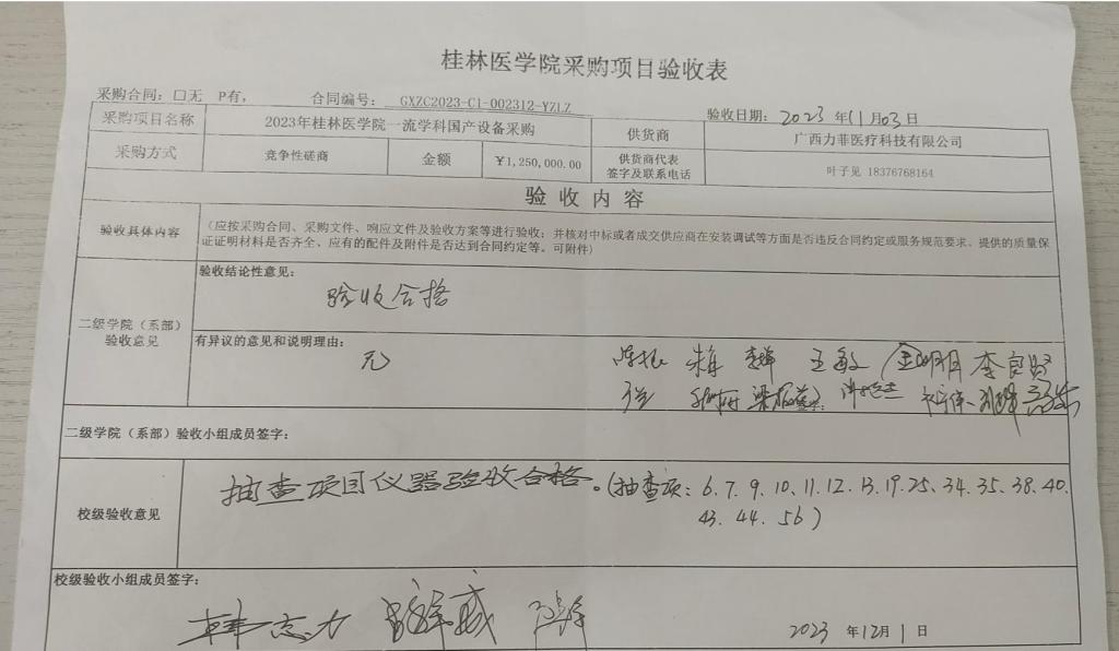 五、成交供应商:广西力菲医疗科技有限公司