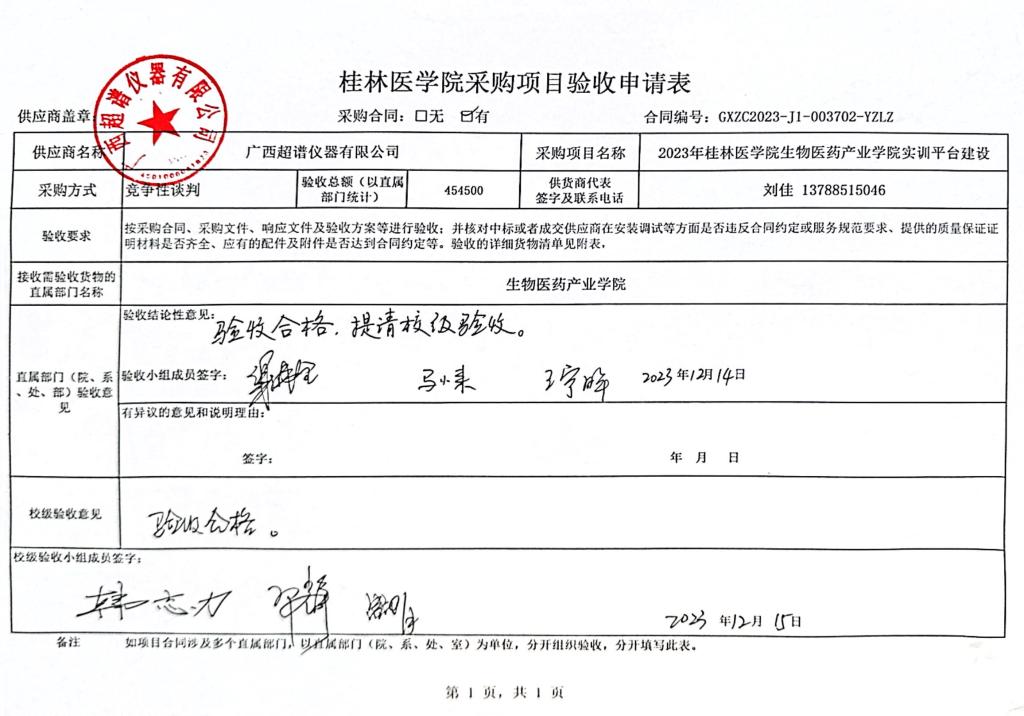 五、成交供应商:广西超谱仪器有限公司