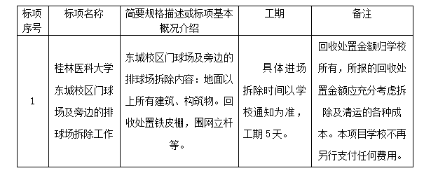 项目名称:桂林医科大学东城校区门球场及旁边的排球场拆除工作