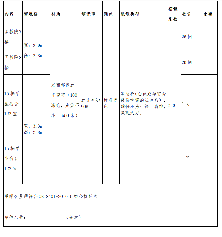 (一)项目名称:临桂校区学生宿舍窗帘安装项目