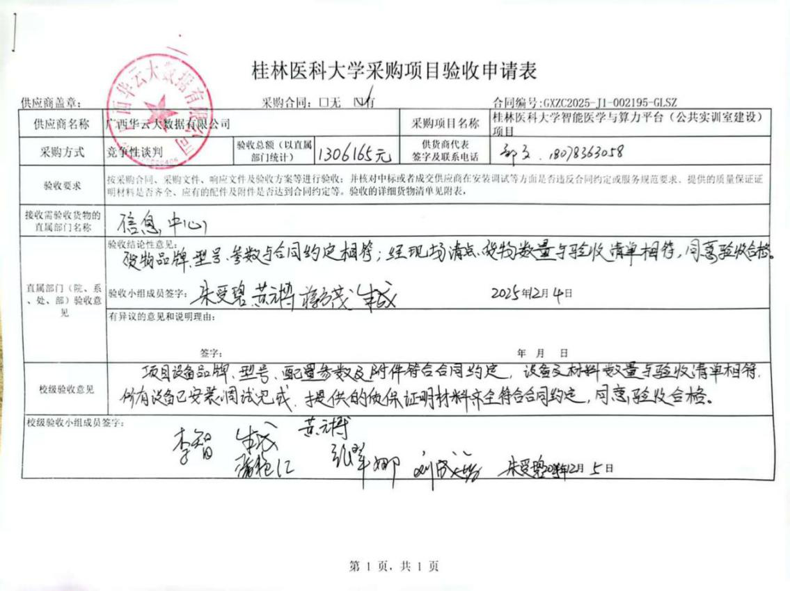 三、采购项目合同名称:桂林医科大学智能医学与算力平台(公共实训室建设)项目采购合同