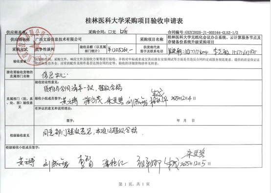 六、验收结论:经验收小组验收,云计算服务节点及存储备份系统升级采购项目评价为合格。
