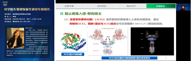 12月31日桂林医学院陈旭教授在后疫情时代从新冠病毒的起源传播、症状特征、预防治疗等方面让大家克服恐慌,理性面对新冠病毒,从相关药物研发进展方面激励大家夯实基础、勇于创新,肩负起药学生的使命责任,贡献力量,共克时艰。